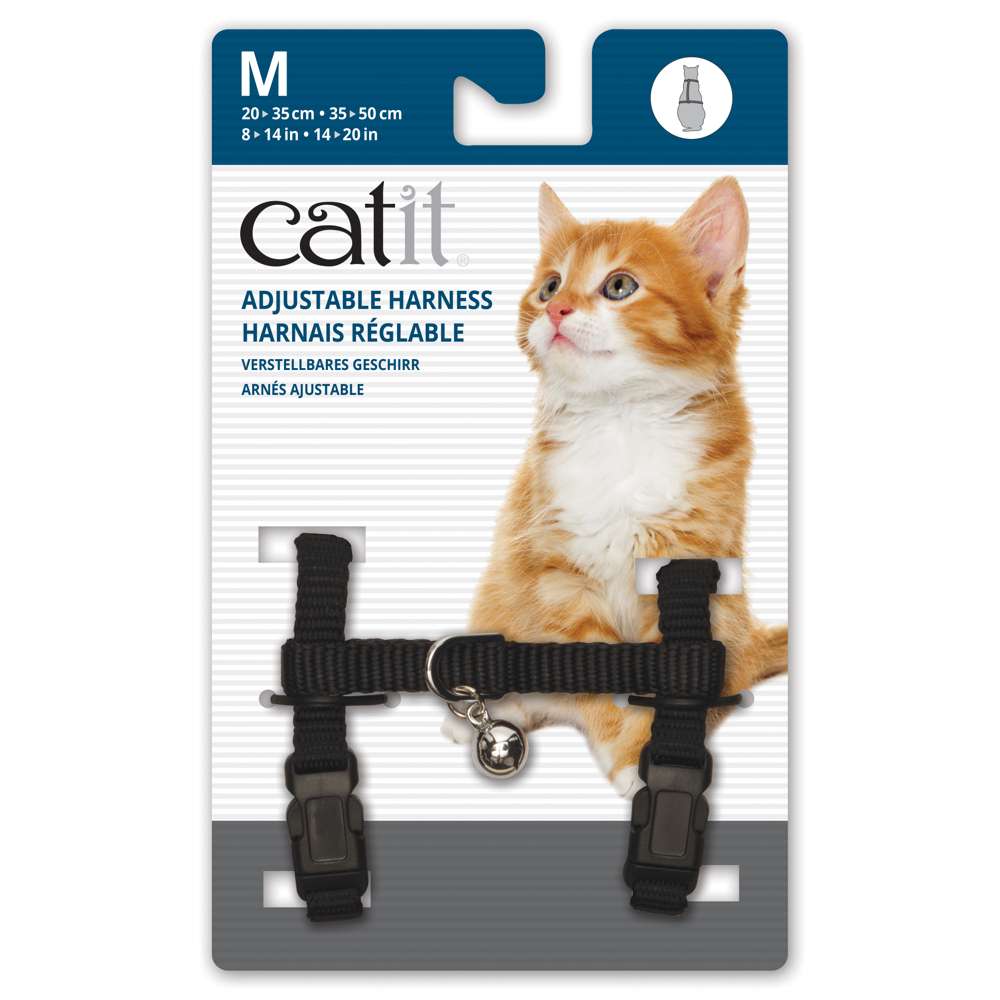 Le harnais réglable Catit est fait de nylon tissé résistant aux accrocs qui ne se resserre pas si le chat l’agriffe. Le harnais est facile à utiliser et le fermoir à dégagement rapide permet de le retirer aisément. La courroie du cou comprend une clochette (amovible) permettant de repérer le chat plus facilement et d’avertir les animaux sauvages de sa présence.
