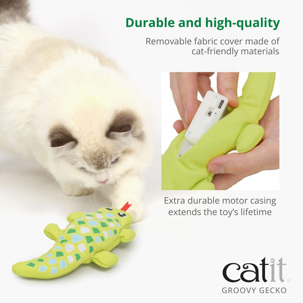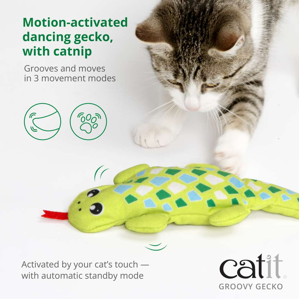 Avec un simple coup de patte de votre chat, le gecko Catit Groovy dodeline son adorable tête en trois modes de mouvements, ce qui incite votre félin à jouer. De plus, le gecko se met automatiquement en veille entre les séances de jeu pour conserver la pile.