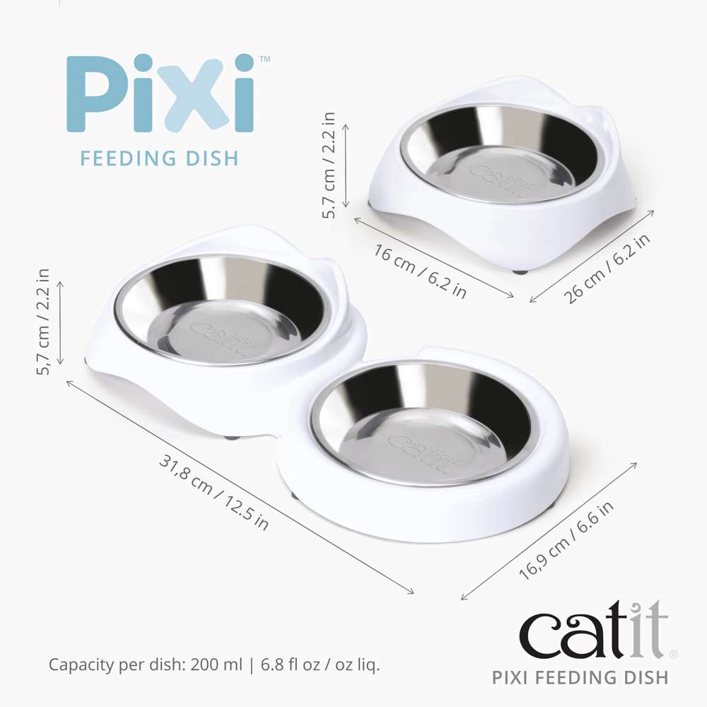 La nourriture a vraiment meilleur goût lorsqu’elle est bien présentée, et c’est facile avec les bols de nourrissage Catit PIXI! Les oreilles et la queue de chat ajoutent une touche adorable pour s’agencer à tous les décors intérieurs. Les bols de nourrissage Catit PIXI sont peu profonds, ce qui ne dérange les moustaches des chats et permet à ces derniers de profiter pleinement de leur repas.