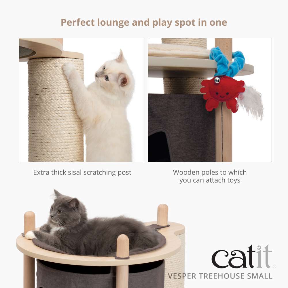 L’arbre à chat Vesper constitue une aire de jeu moderne et inspirée de la nature pour les chats et les chatons aventureux. Les poteaux de l’arbre à chat peuvent être décorés à l’aide d’une variété de jouets afin de rendre l’heure de jeu de votre chat encore plus amusante.