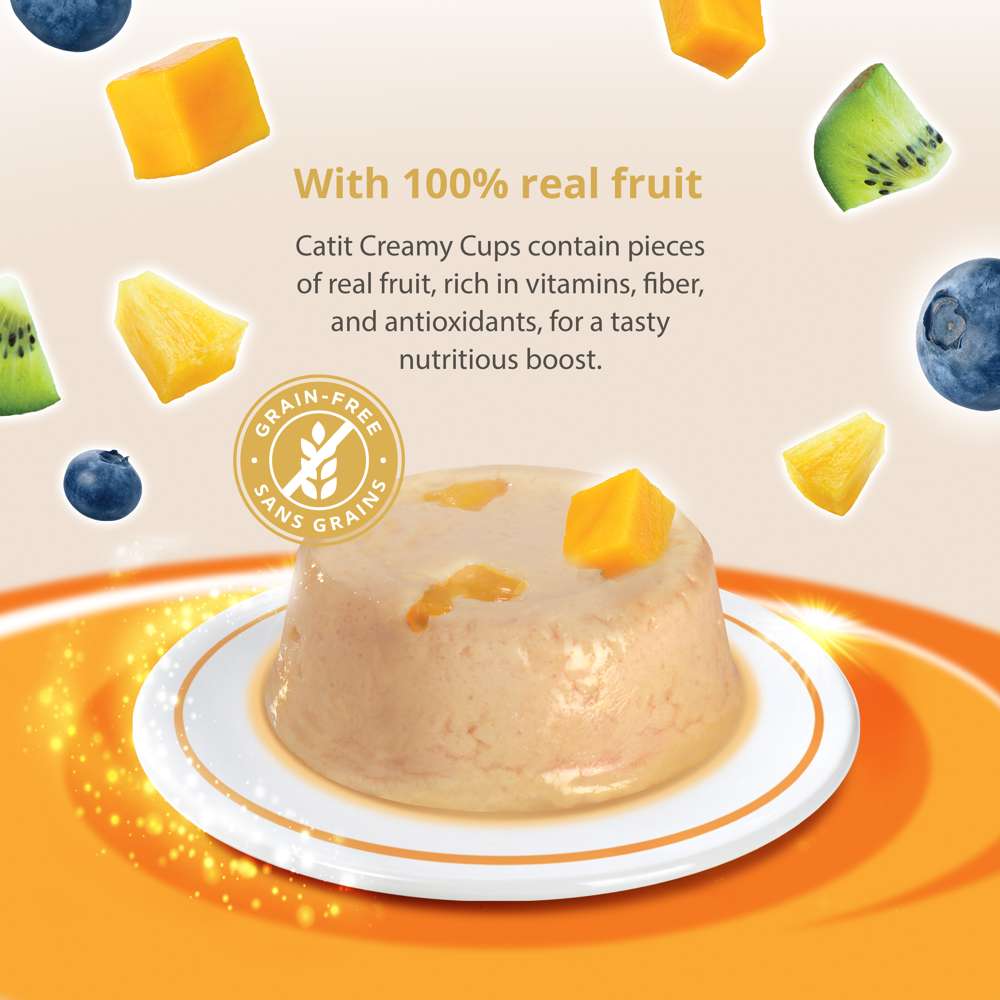 Even though cats are obligate carnivores, they will happily sneak some delicious fruits to complement their meaty diet. The succulent chunks of fruit in Catit Creamy Cups are rich in vitamins, fiber, and antioxidants, for a tasty nutritious boost.
