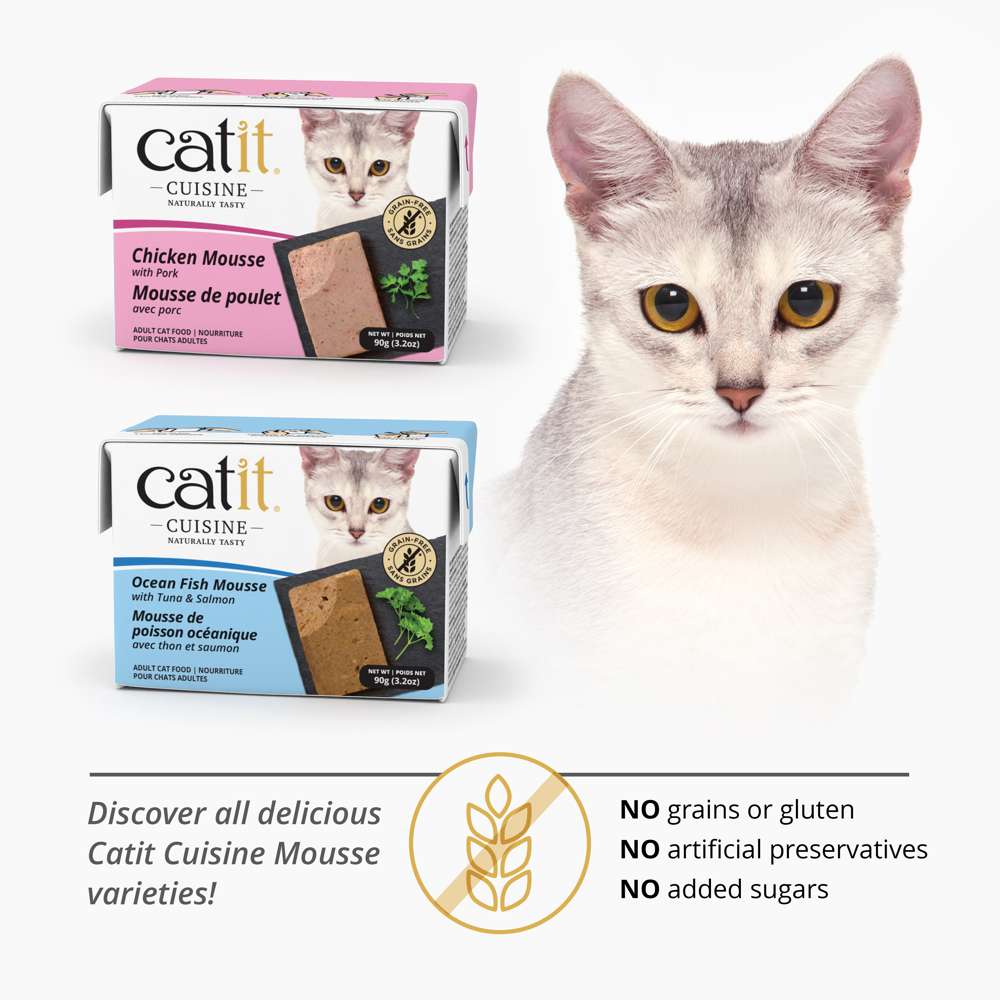 Catit Cuisine Mousse is formulated to meet the nutritional levels established by the AAFCO Cat Food Nutrient Profiles for maintenance.