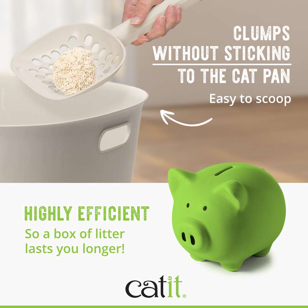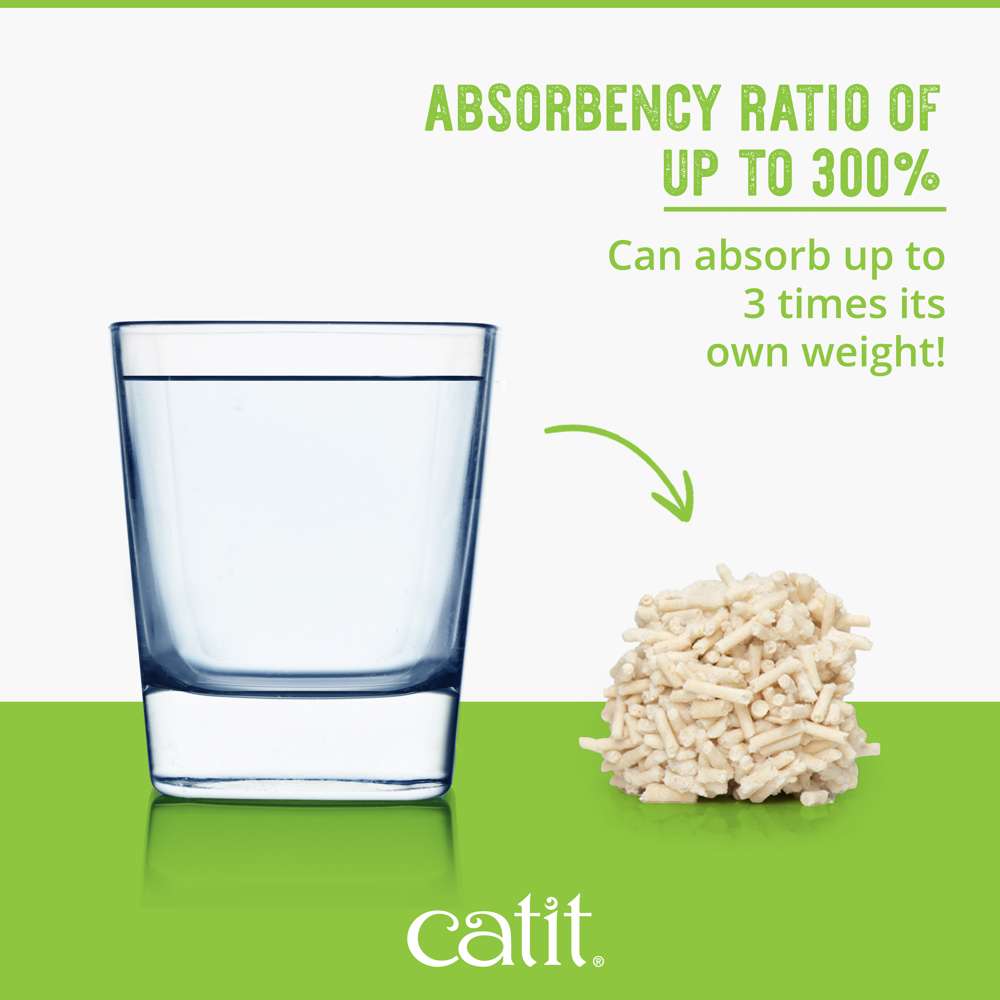 Catit Go Natural Pea Husk Litter absorbs up to three times its own weight. Made with repurposed empty pea husks combined with food-grade materials, this litter delivers excellent clumping and is virtually dust-free.
