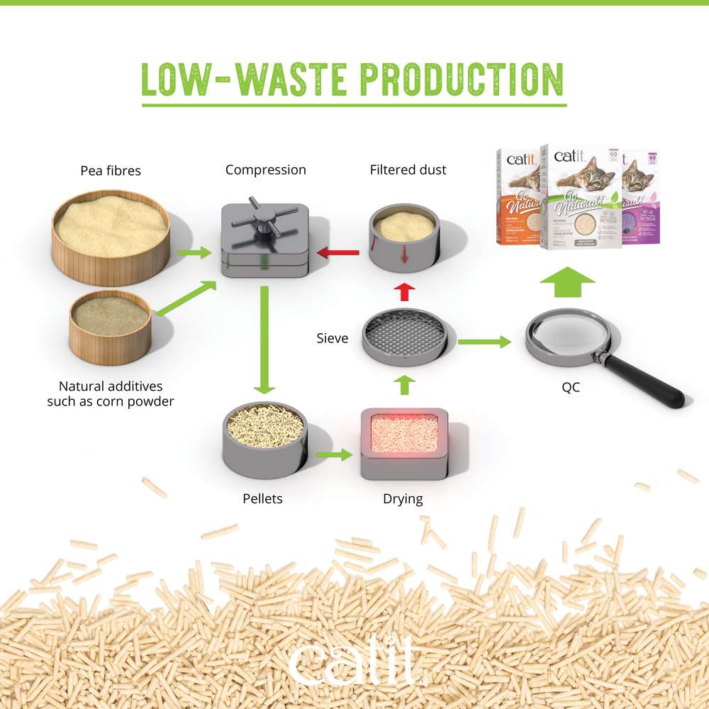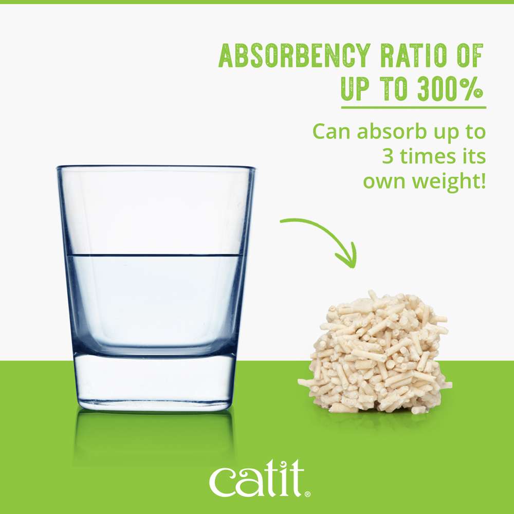 Catit Go Natural Pea Husk Litter absorbs up to three times its own weight. Made with repurposed empty pea husks combined with food-grade materials, this litter delivers excellent clumping and is virtually dust-free.