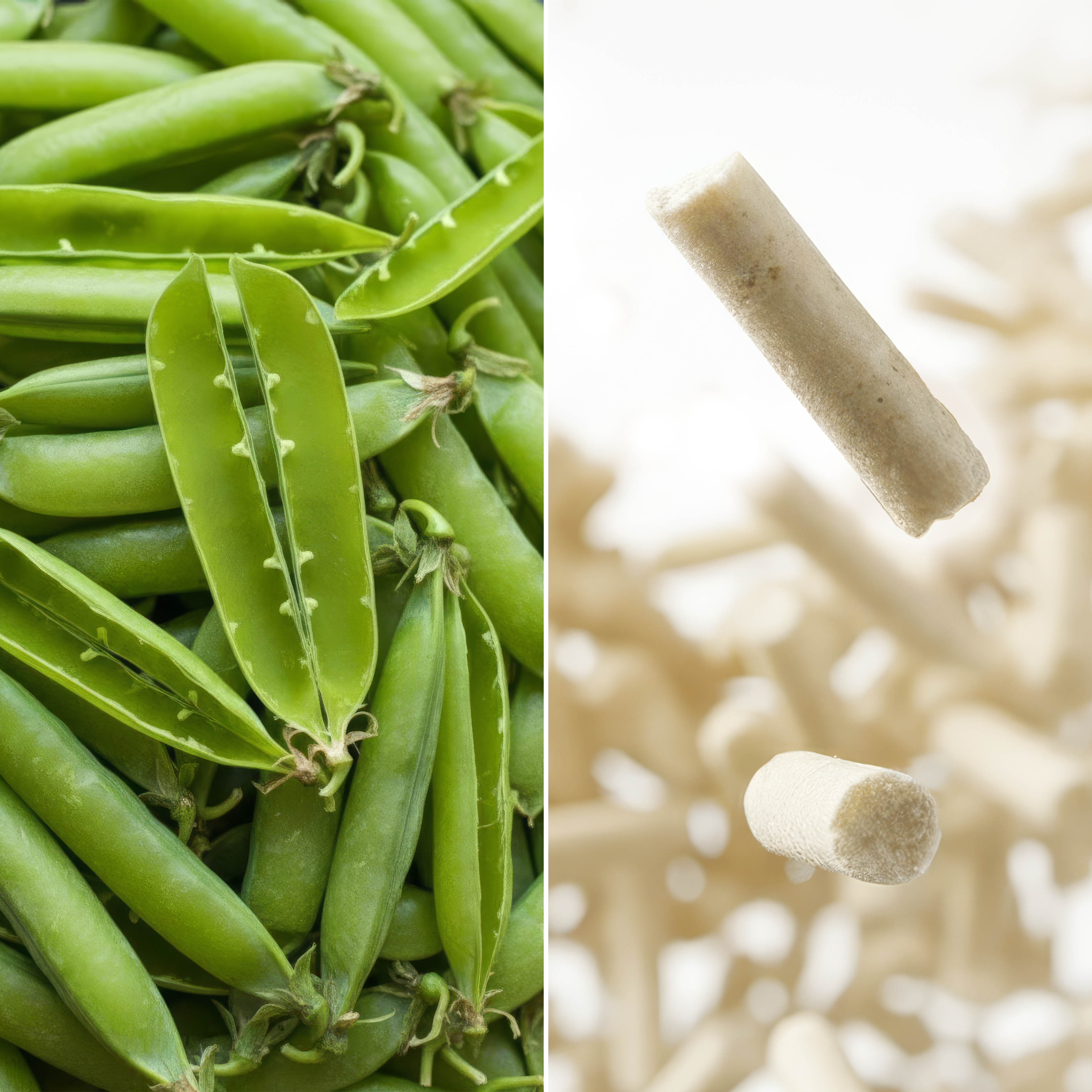 This litter is crafted using recycled pea husks combined with food-grade ingredients such as starch, corn powder, and guar gum, which work as natural clumping agents.