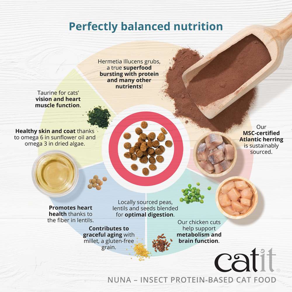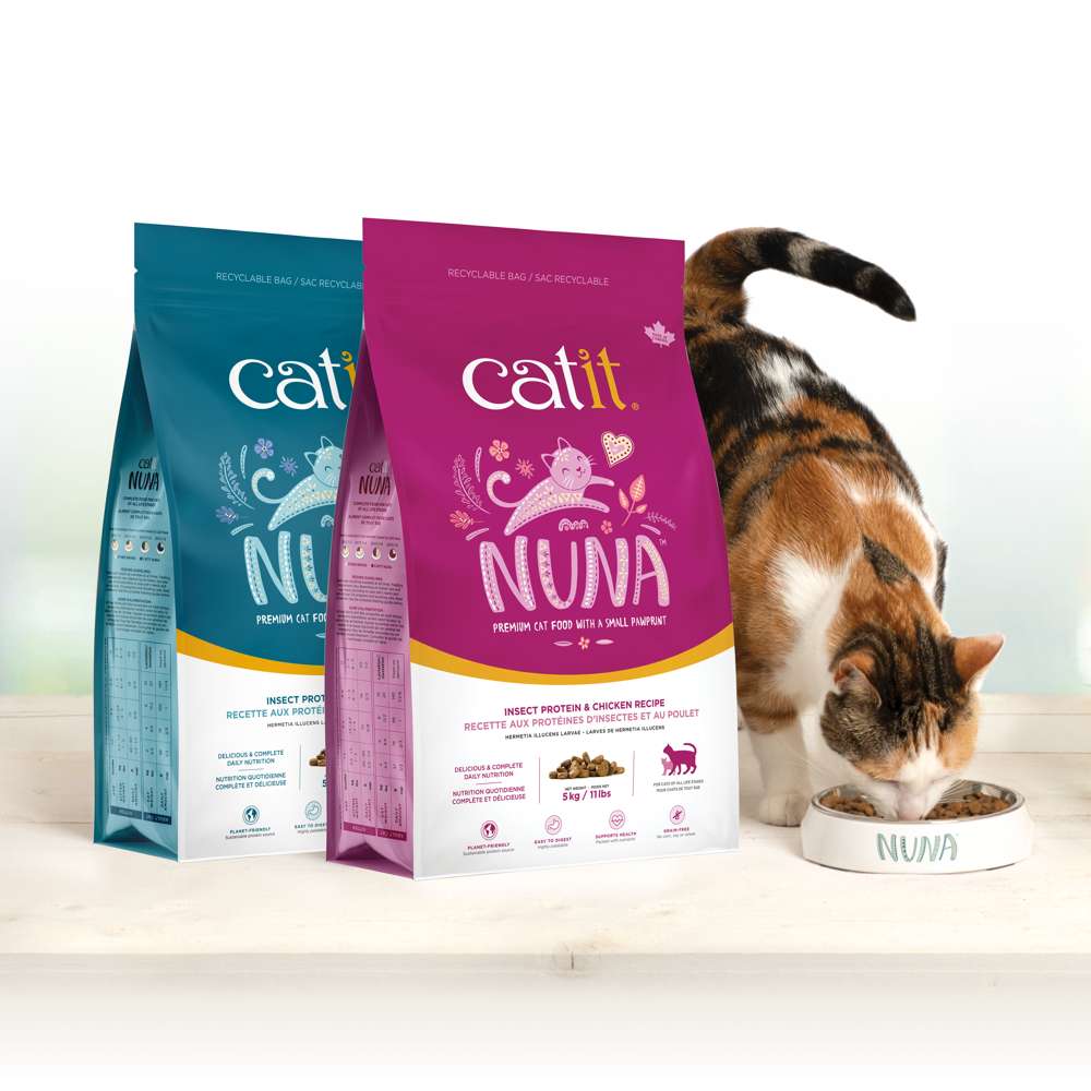 Catit Nuna is a premium cat food, and the perfect alternative to unsustainable meat-based foods. Easily digestible and extremely palatable, this revolutionary dry food is loved by cats and offers an opportunity for us cat lovers to make a difference.