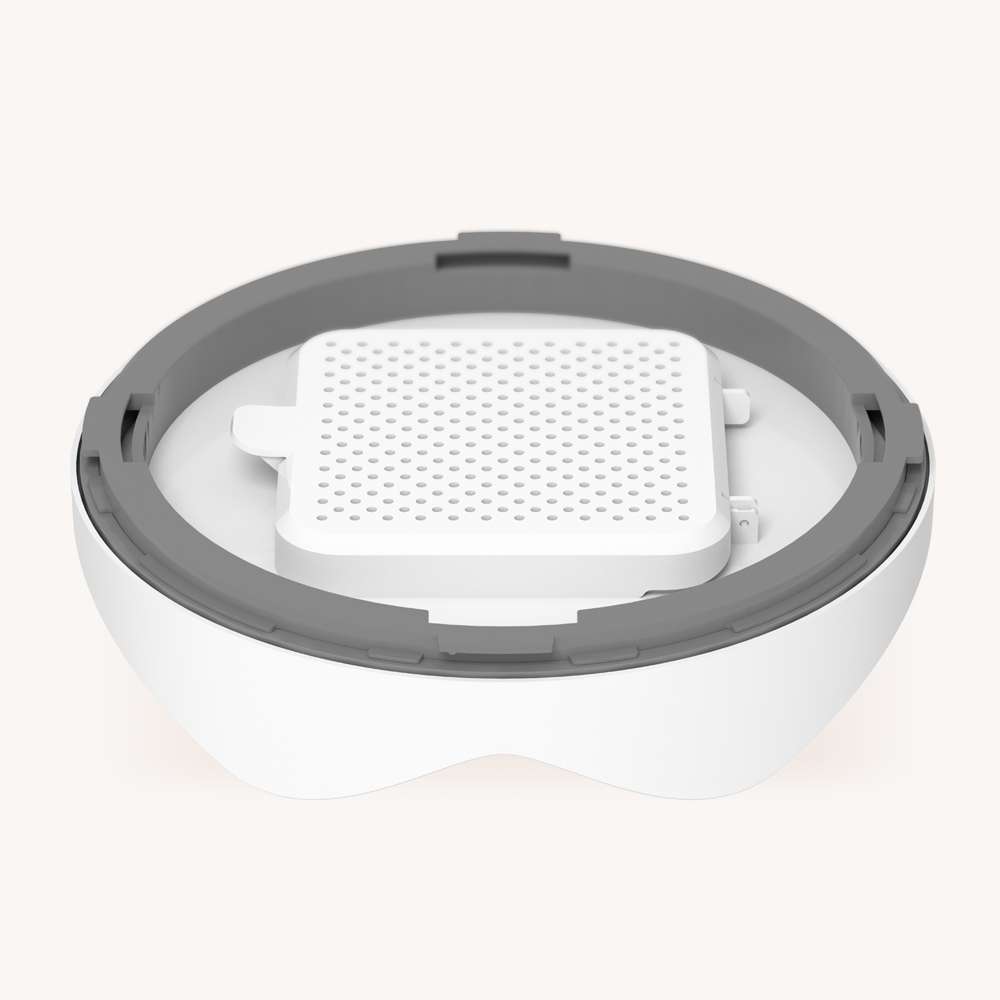 The Catit PIXI Smart Feeder features a top lid with built-in desiccant pack holder. The dehumidifying qualities of the silica gel will help reduce moisture in the food reservoir.
