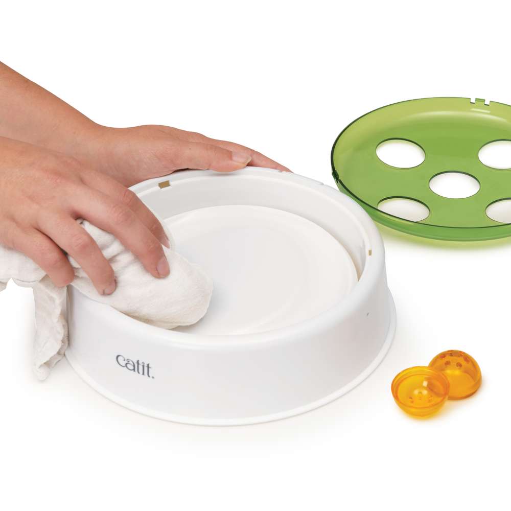 Simply wipe the Ball Dome with a damp cloth. To clean the inside of this toy, carefully remove the green dome cover following our instructions.