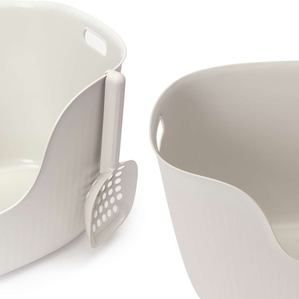 The Catit Loo’s ergonomic design is perfect for both cats and their owners. Its entrance is raised just slightly to reduce the chance of litter spills, while the spacious interior gives your cat enough room to dig and move comfortably. The rounded handles provide a comfortable, secure grip for easy handling when cleaning or moving the litter box.